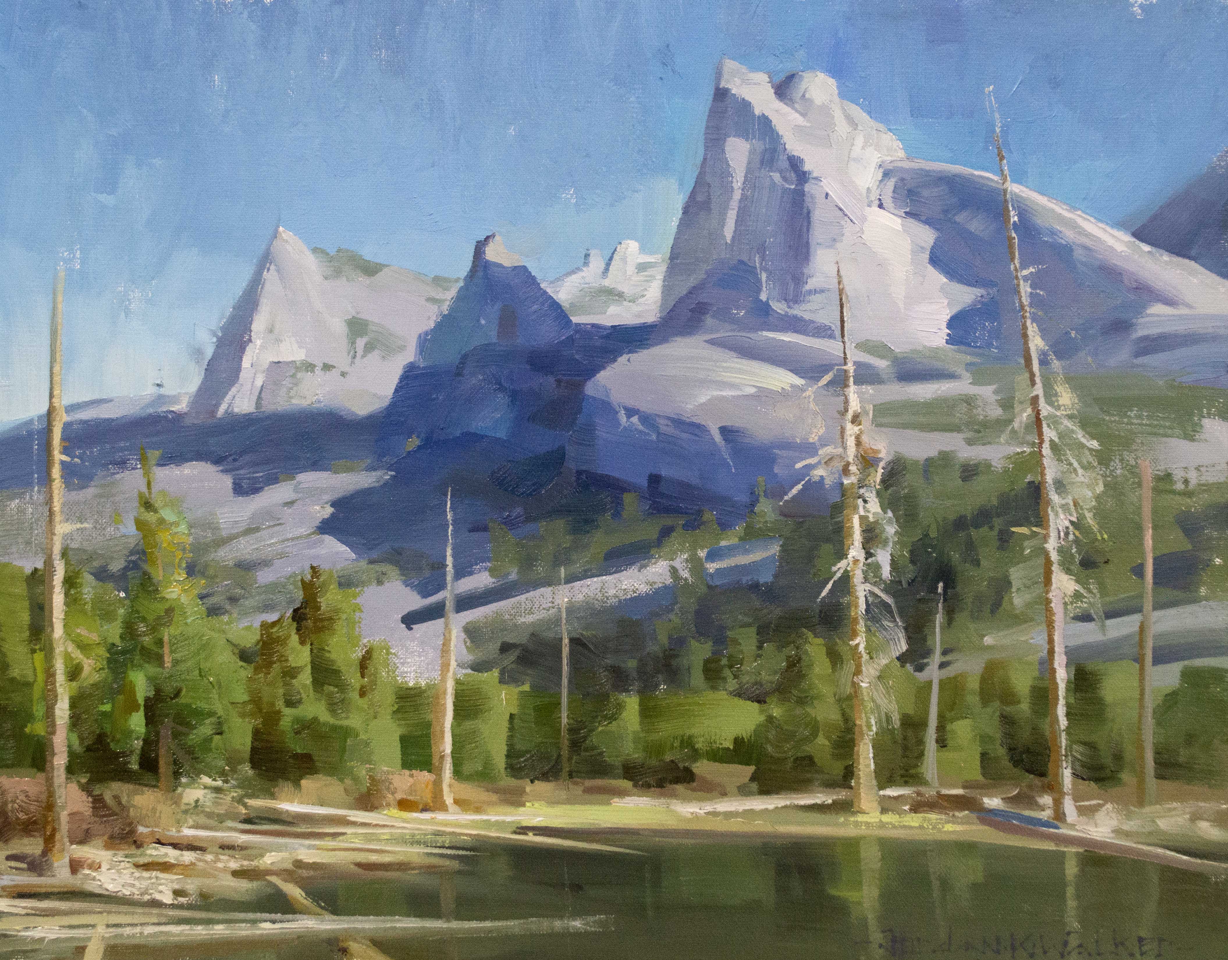 Over an hour and twelve minutes, Jordan K Walker will demonstrate his process for painting a dramatic mountain landscape in oil. He'll describe his approach to analyzing and improving upon photo reference to create an engaging composition, highlight the tools and pigments he uses in his studio, and he'll show you every step in the process from early underpainting to finishing touches.